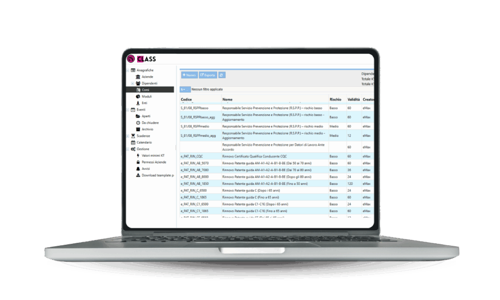 Class è pensato per aziende, enti formativi, responsabili HSE e RSPP che devono: