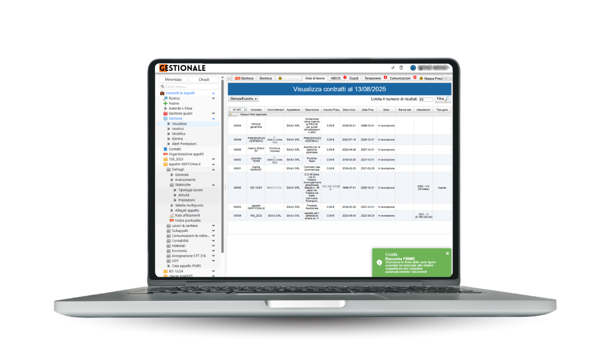 digitalizzazione dei processi amministrativi e rendicontazione immediata, anche con gestione di subappalti e fornitori esterni.